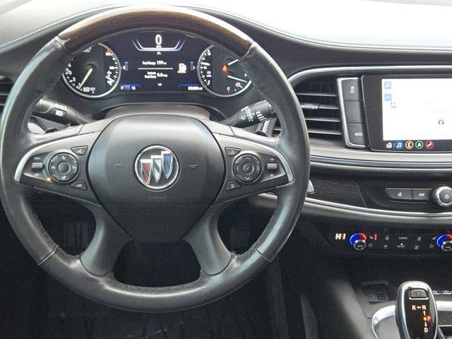 AVENIR TECHNOLOGY PACKAGE includes (KSG) Adaptive Cruise Control - Advanced, (UGN) Enhanced Automatic Emergency Braking and (CWM) Premium Suspension Package with hydraulic dampers and steering calibration, TRAILERING PACKAGE, 5000 LBS. includes (V08) heavy-duty engine cooling system, (CTT) Hitch Guidance, (PZ8) Hitch Guidance with Hitch View and trailer hitch, LPO, FLOOR LINER PACKAGE includes (RIA) first and second row All-weather floor liners, LPO, (RIB) third row All-weather floor liner, LPO and (CAV) Integrated cargo liner, LPO, AUDIO SYSTEM, 8 DIAGONAL BUICK INFOTAINMENT SYSTEM WITH NAVIGATION includes multi-touch display, AM/FM/SiriusXM stereo, Bluetooth® streaming audio for music and most phones, Android Auto and Apple CarPlay capability for compatible phones, advanced voice recognition, in-vehicle apps, personalized profiles for infotainment and vehicle settings. Includes greater memory (STD), ENGINE, 3.6L V6, SIDI, VVT STOP/START (310 hp [231 kW] @ 6800 rpm, 266 lb-ft of torque [359 N-m] @ 2800 rpm) (STD), TRANSMISSION, 9-SPEED AUTOMATIC (STD). Buick Avenir with White Frost Tricoat exterior and Ebony with Ebony interior accents interior features a V6 Cylinder Engine with 310 HP at 6800 RPM*.